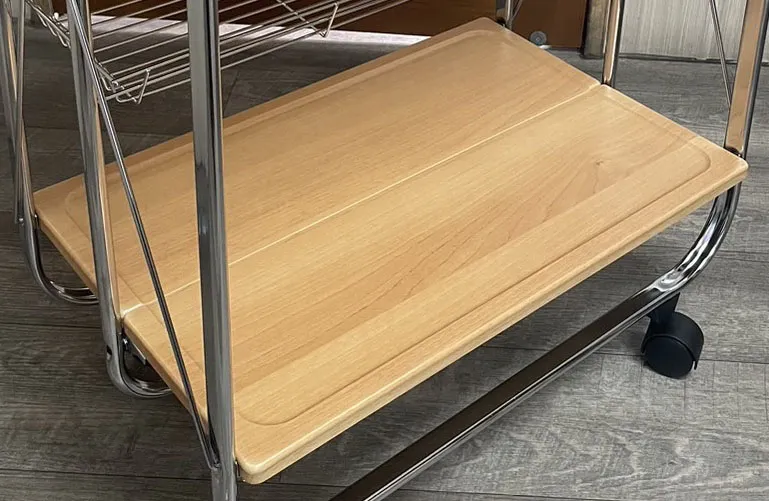 A: Yes, we can do it. We can customize the size of the Carved Wooden Board 2 Tier Foldable Trolley for our clients. We can discuss further details together.